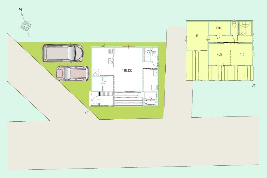2階)6洋・4.5洋・4.5洋・WIC・WC 1階)18LDK |