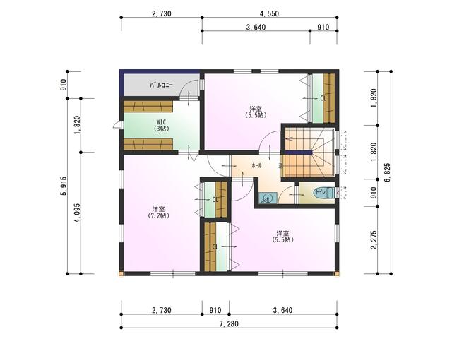 2階)7.2洋・5.5洋・5.5洋・3WIC・WC 1階)14LDK・2.5WIC |
